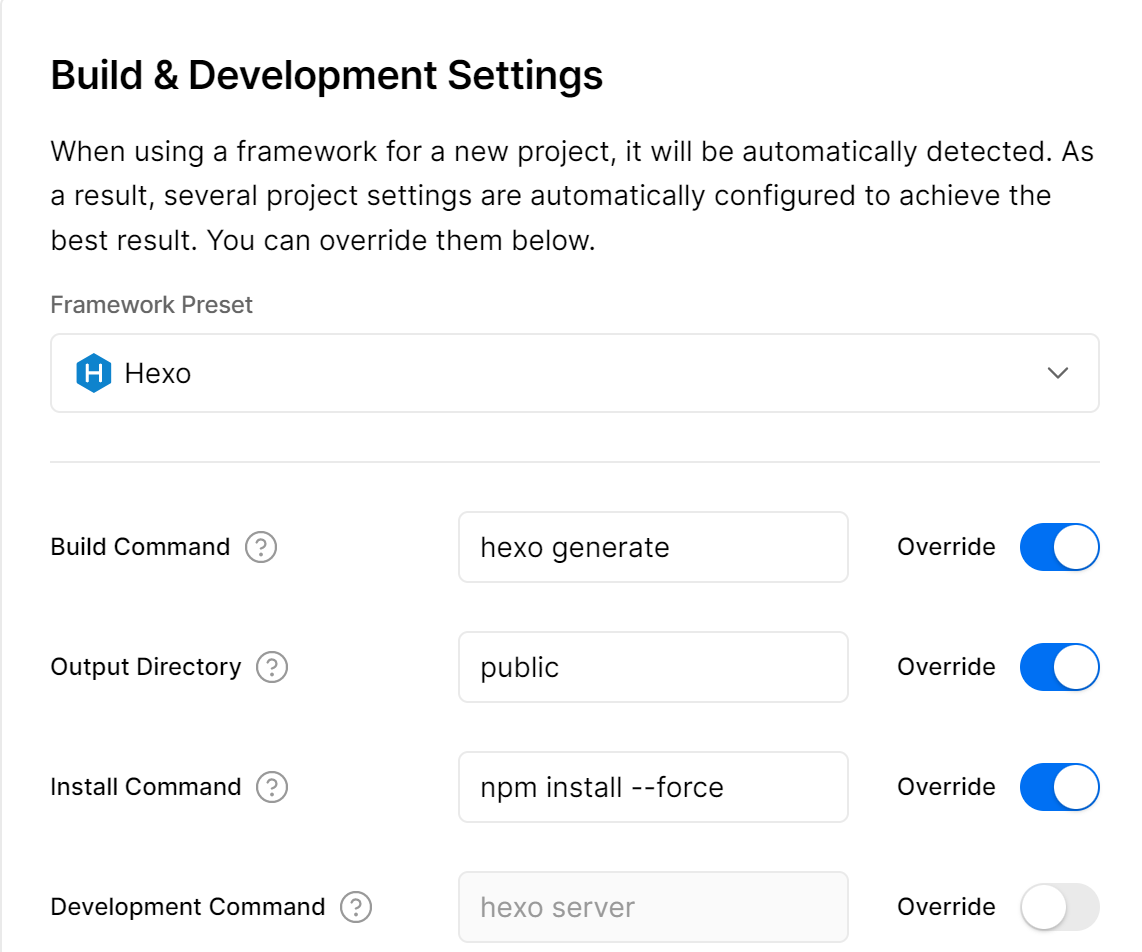 Framework Preset:Hexo